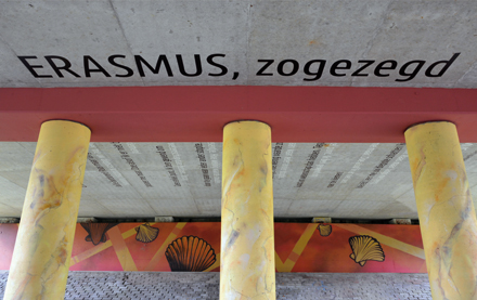 De schildering is aangebracht door Mervyn van der Meij en Silvain Lous, die ook de beschildering van de pilaren en de vlakke delen boven de taluds beschilderd hebben.